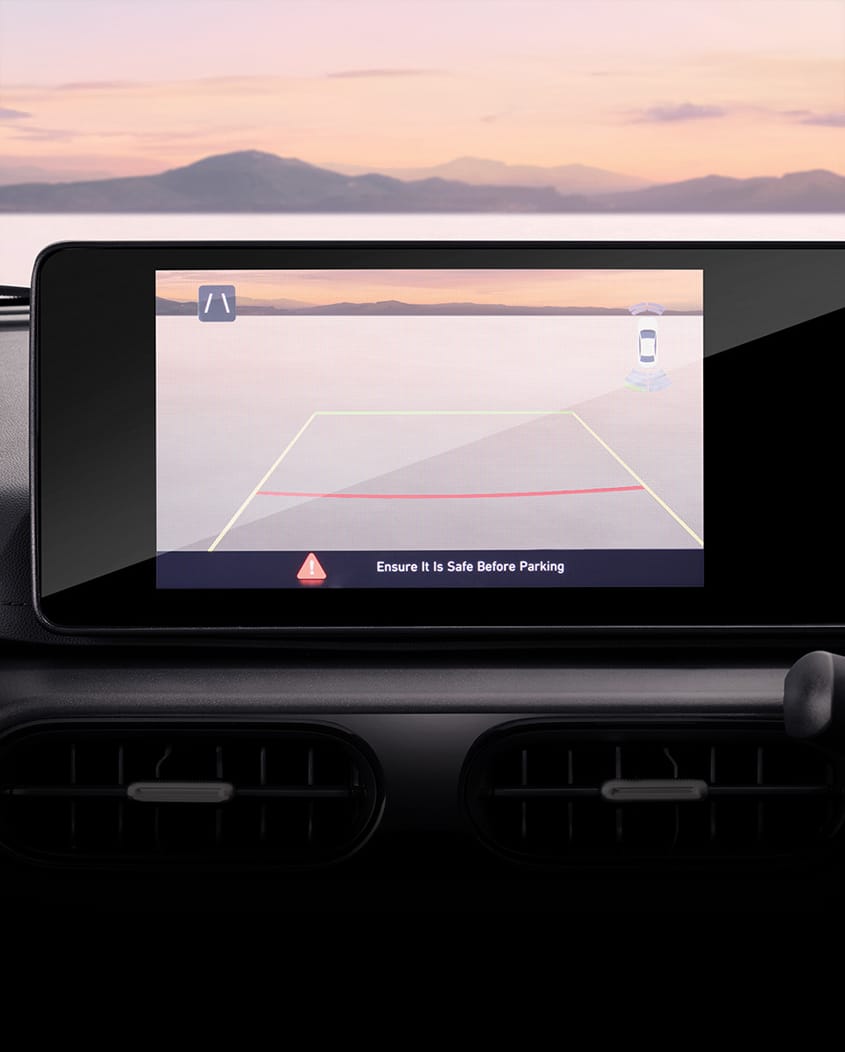 Shows what’s behind your car, helping you park and reverse safely with ease.