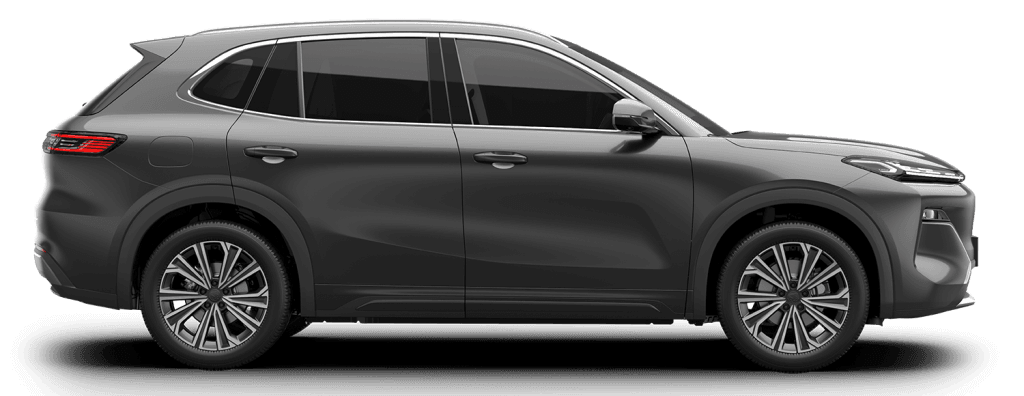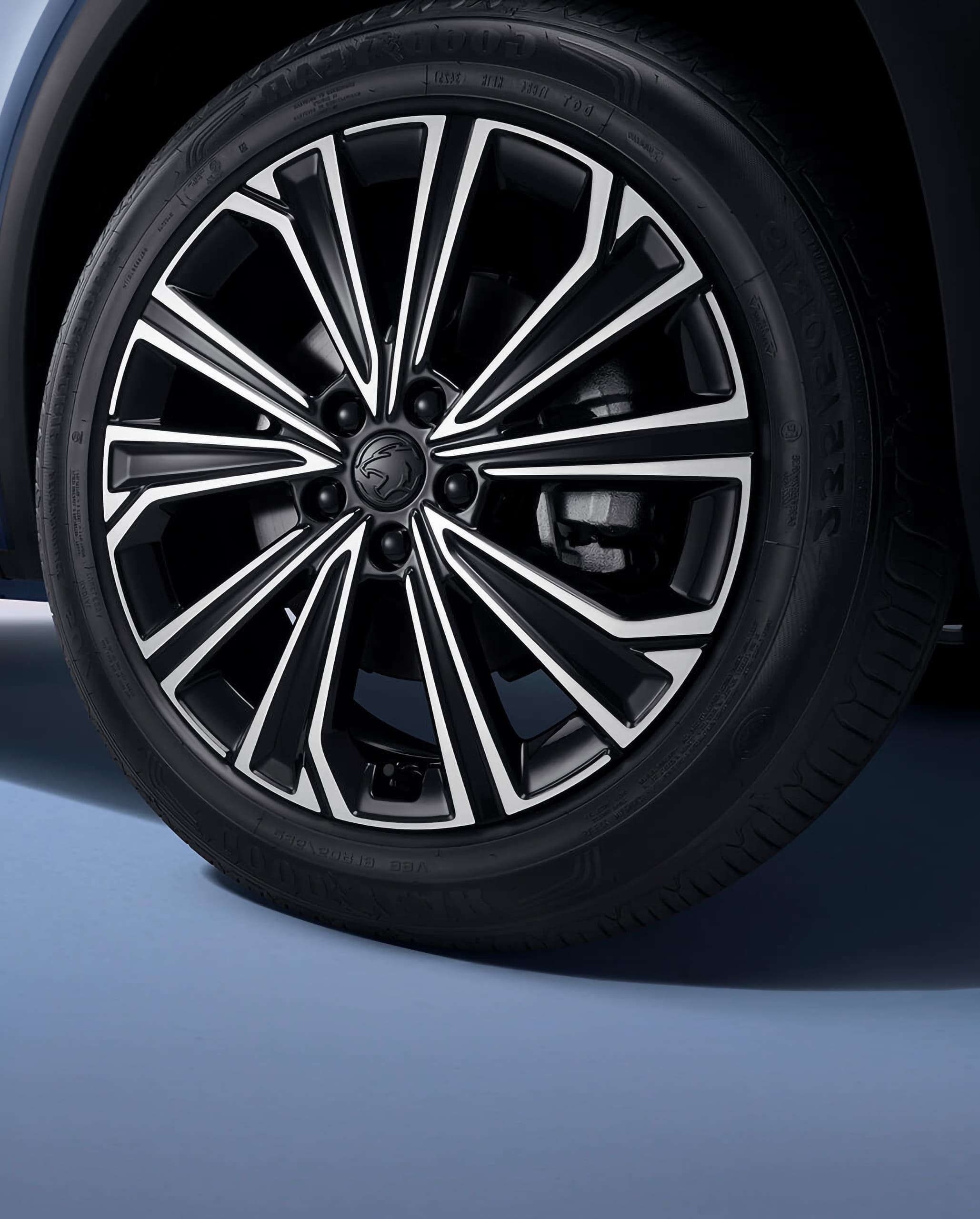 Bold 19-inch alloy wheels reinforce a progressive stance.