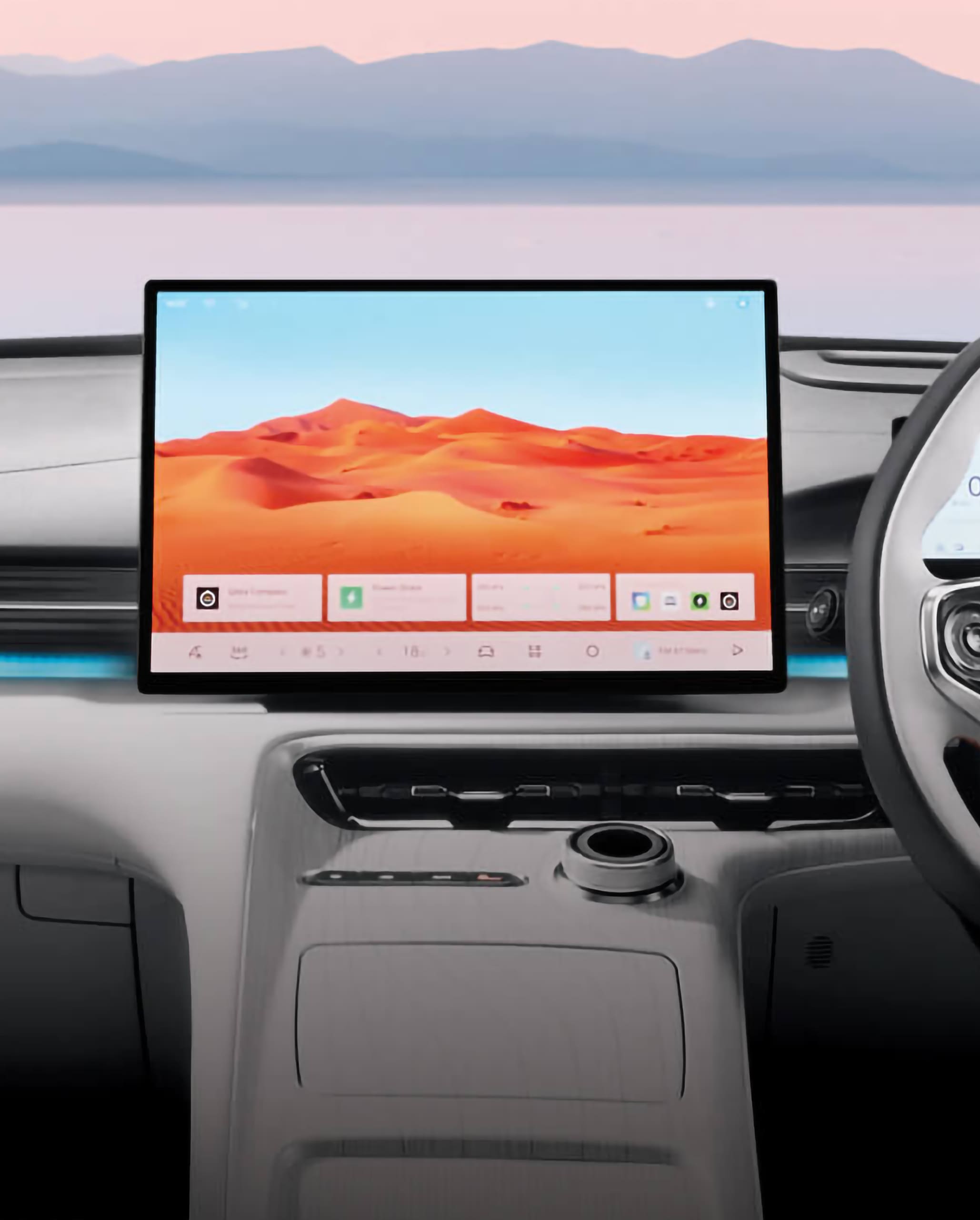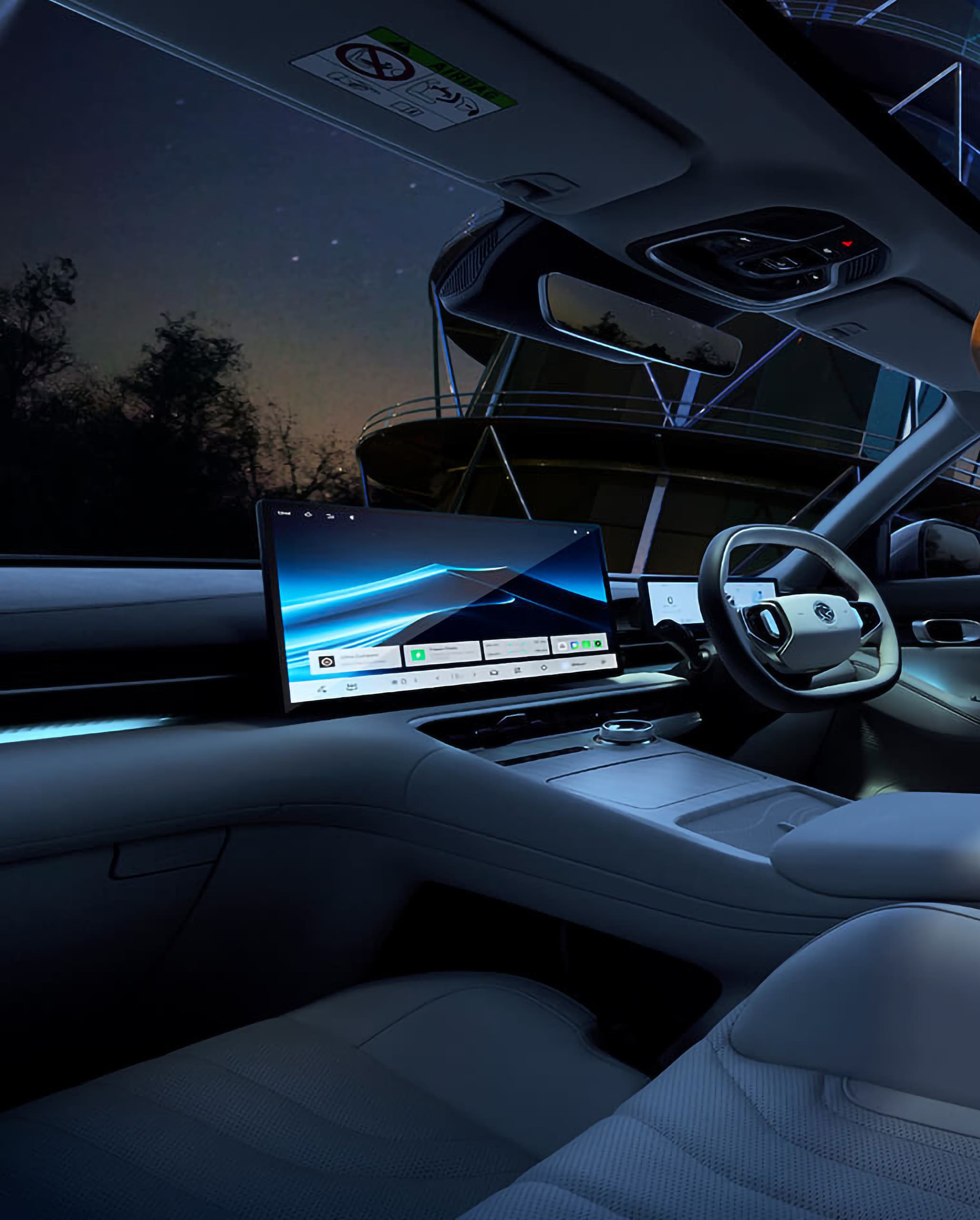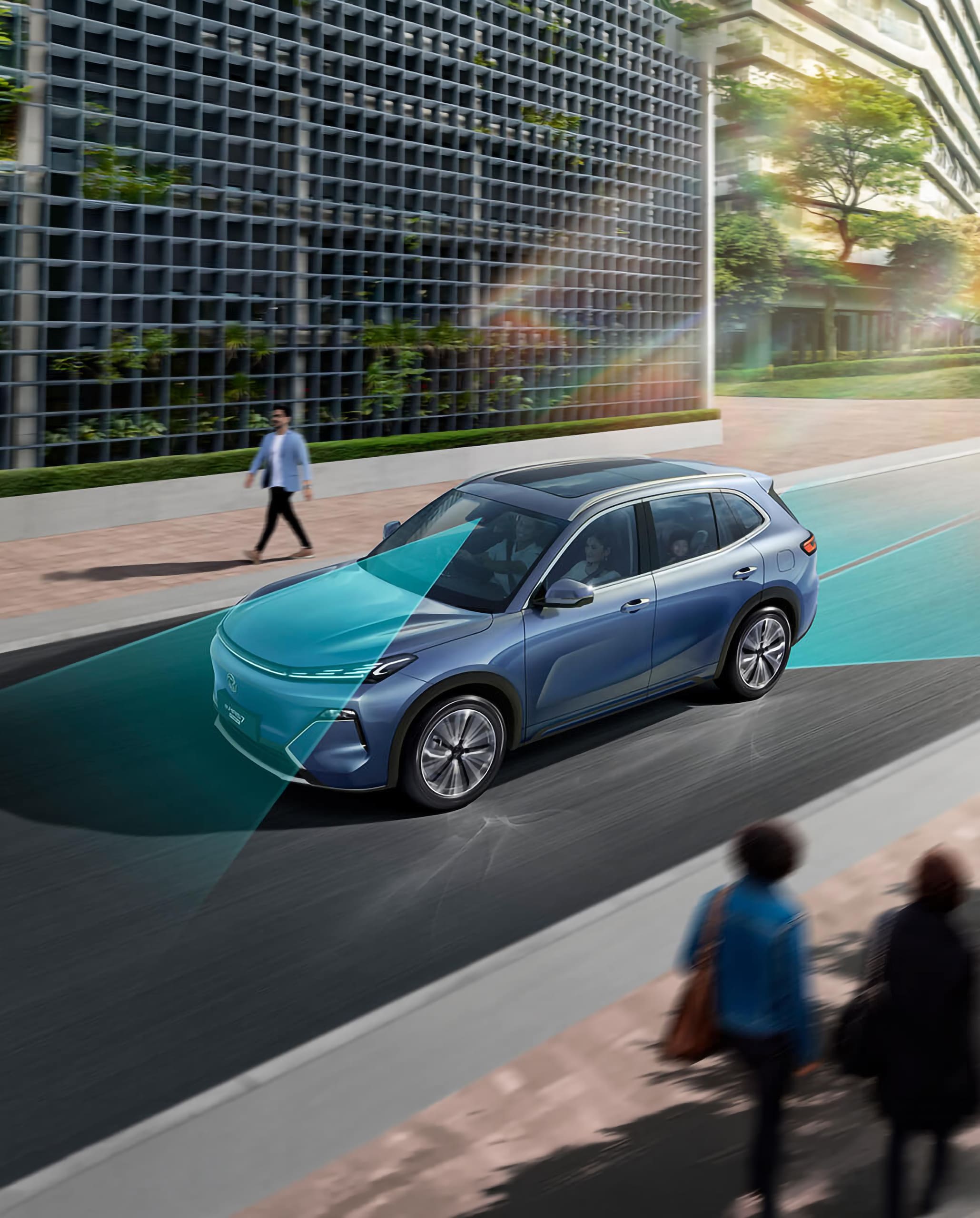 A full-width LED light bar creates a futuristic front signature while enhancing visibility.