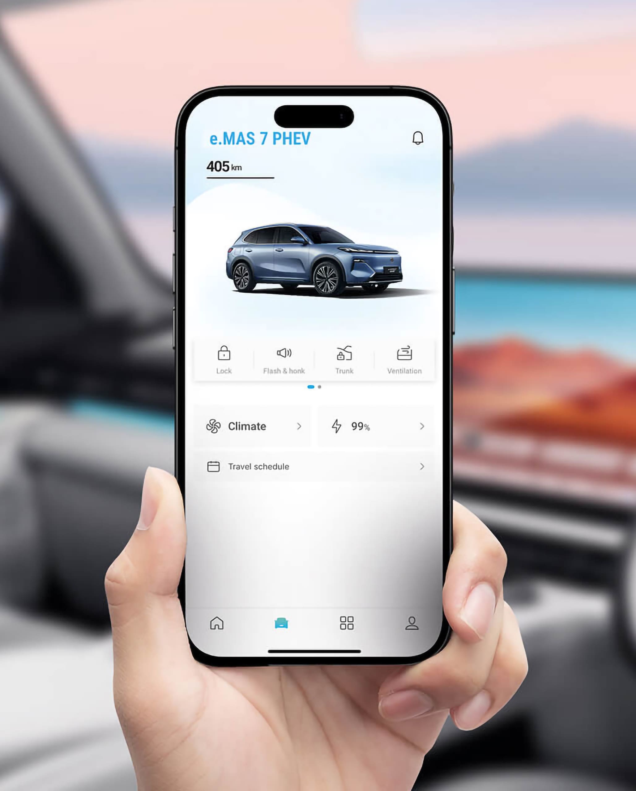 Manage key vehicle functions remotely and stay updated with connected ownership features.