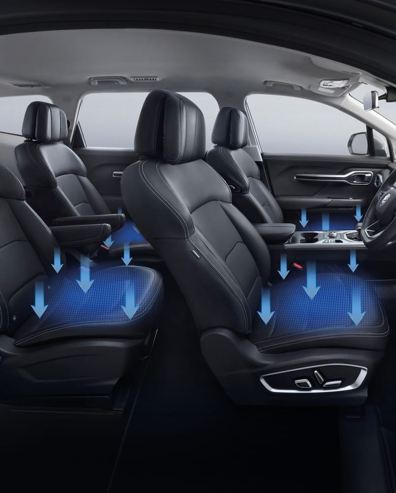 Soft and plush seats that provide a more premium feel and lasting comfort with ventilated front and second row seats delivering a refreshing driving environment even in hot weather.