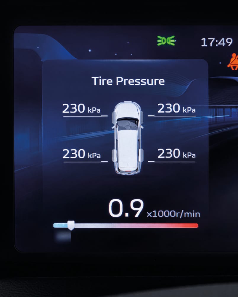 Monitors real-time tyre pressure for peace of mind.
