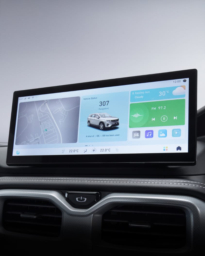 Floating touchscreen monitor that provides easy access to important features at your fingertips.