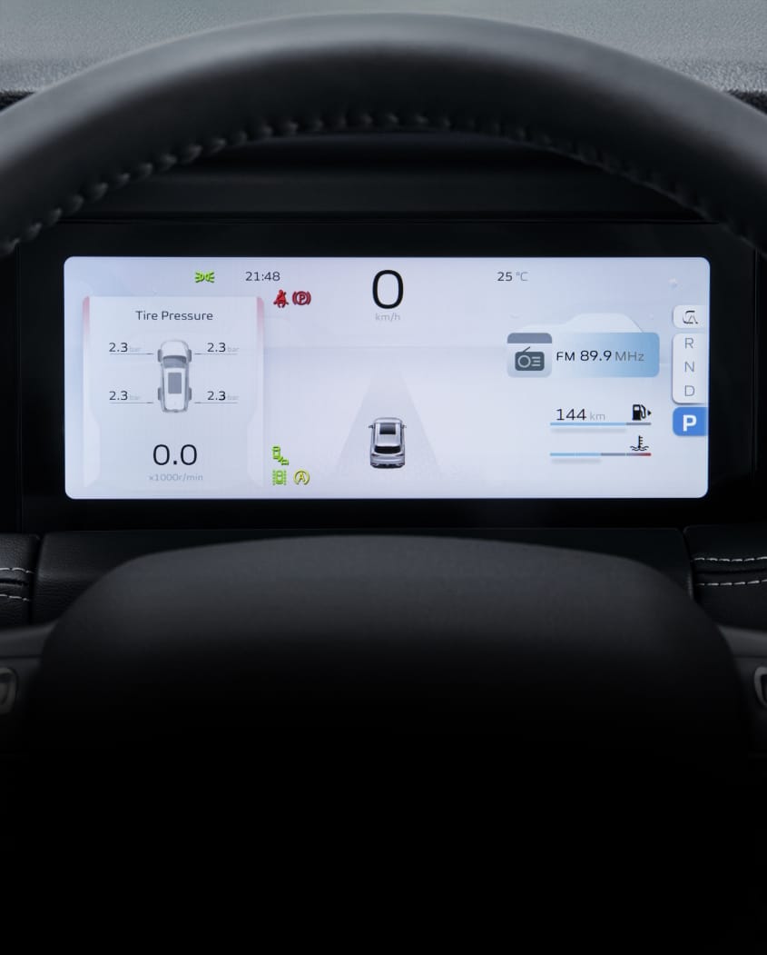 Equipped with Autonomous Emergency Braking (AEB), Forward Collision Warning (FCW), Rear Collision Warning (RCW), Adaptive Cruise Control (ACC) with Stop and Go, Intelligent Cruise Control (ICC), Lane Departure Warning (LDW), Lane Departure Prevention (LDP), Lane Centering Control (LCC), Emergency Lane Keep Assist (ELKA), Traffic Sign Information (TSI), and Rear Cross Traffic Alert (RCTA).