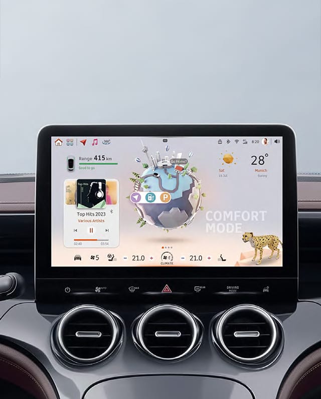 The large floating touchscreen provides seamless access to navigation, entertainment and intelligent vehicle settings.