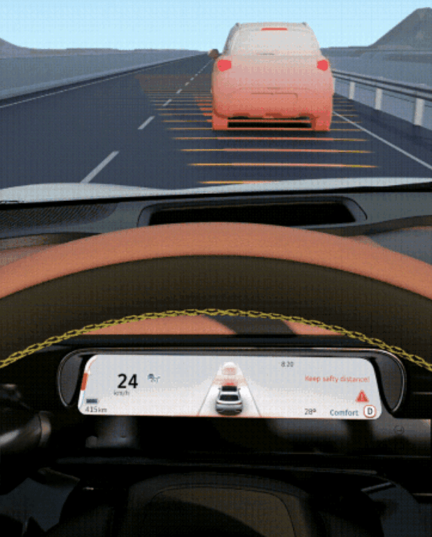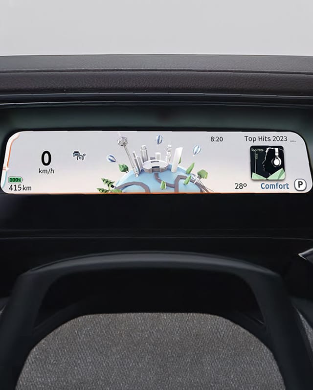 The fully digital instrument cluster delivers crisp visuals and real-time driving information in a clean layout.